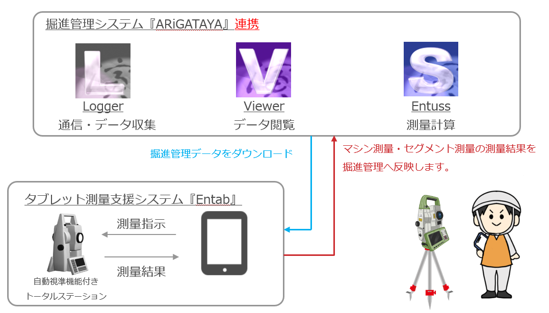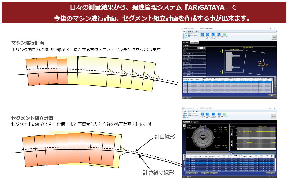 また測量結果を掘進管理システムに反映し、指示書作成等に役立てることが可能です。